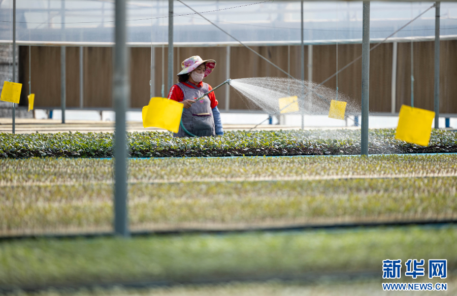 工人給蔬菜種苗澆水(10月21日攝)。新華網 趙普凡 攝