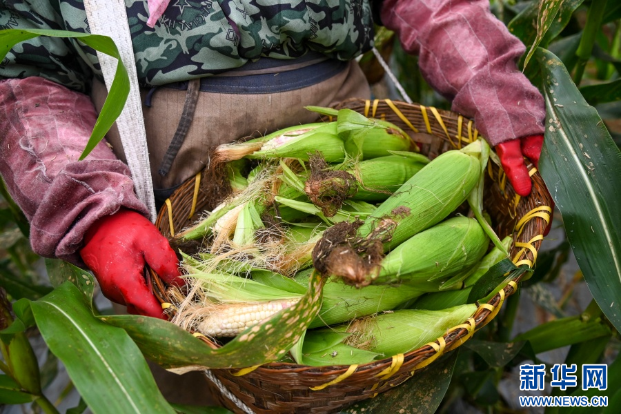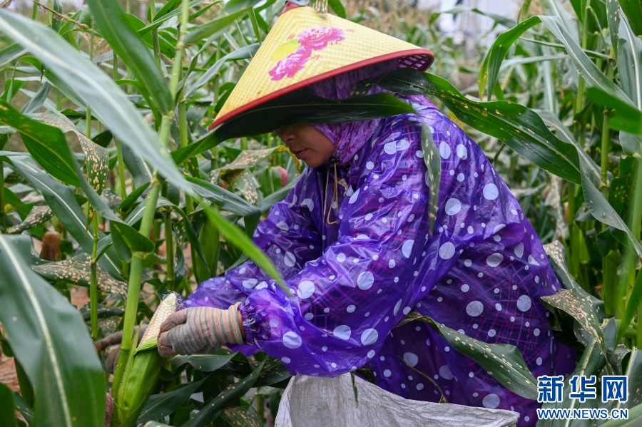 采摘糯玉米(11月25日攝)。新華網發(劉熙 攝)