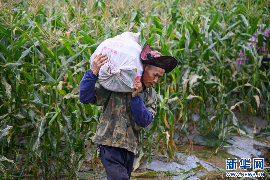 搬運采摘好的糯玉米(11月25日攝)。新華網發(劉熙 攝)