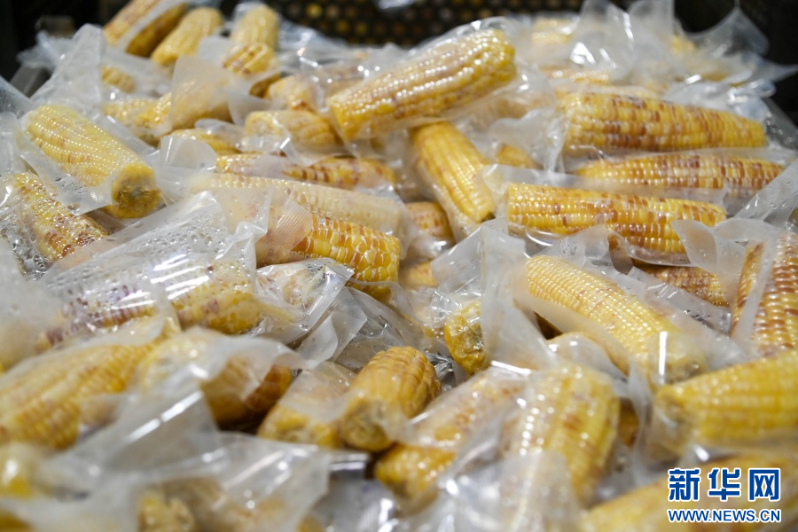 工人正在處理包裝好的糯玉米(11月25日攝)。新華網發(劉熙 攝)