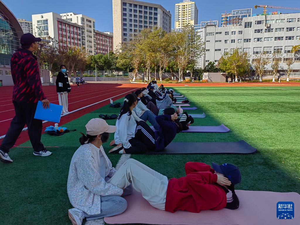 云南大學女子仰臥起坐測試。新華社記者 岳冉冉 攝