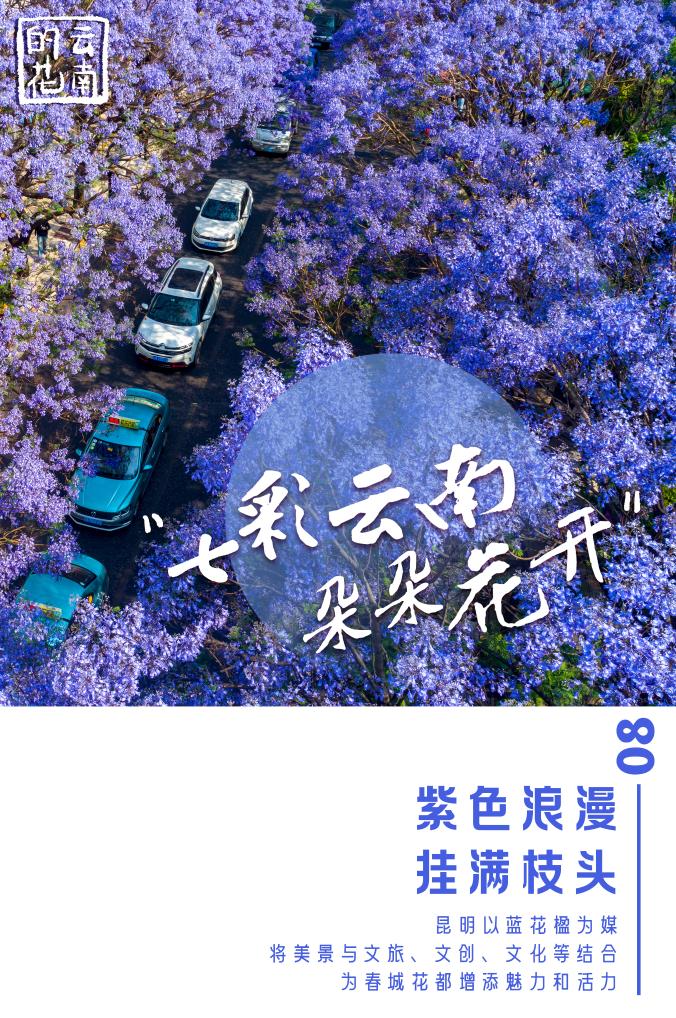 近年來,昆明以藍花楹為媒,將美景與文旅、文創、文化等結合,為春城花都增添魅力和活力。