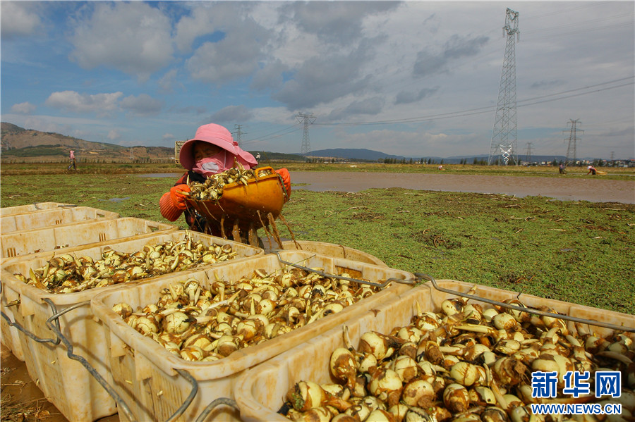 冬日里,云南省曲靖市沾益區盤江鎮小后所村的1000余畝茨菇迎來豐收,務工人員忙著采收供應省內外市場。近年來,沾益區盤江鎮積極調整農業產業結構,依托當地豐富的水資源、田地資源等優勢,緊盯市場需求,引進和培育優質農業和特色農業,大力發展茨菇、茭白、蓮藕等水生作物農業產業,走出一條農業提質增效、農民增產增收的新路子,為鄉村振興注入動能。新華網發(楊俊鵬 攝)