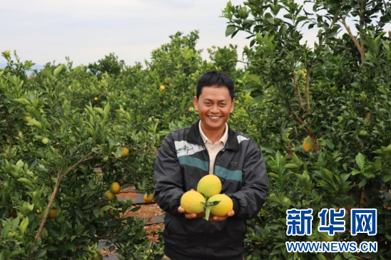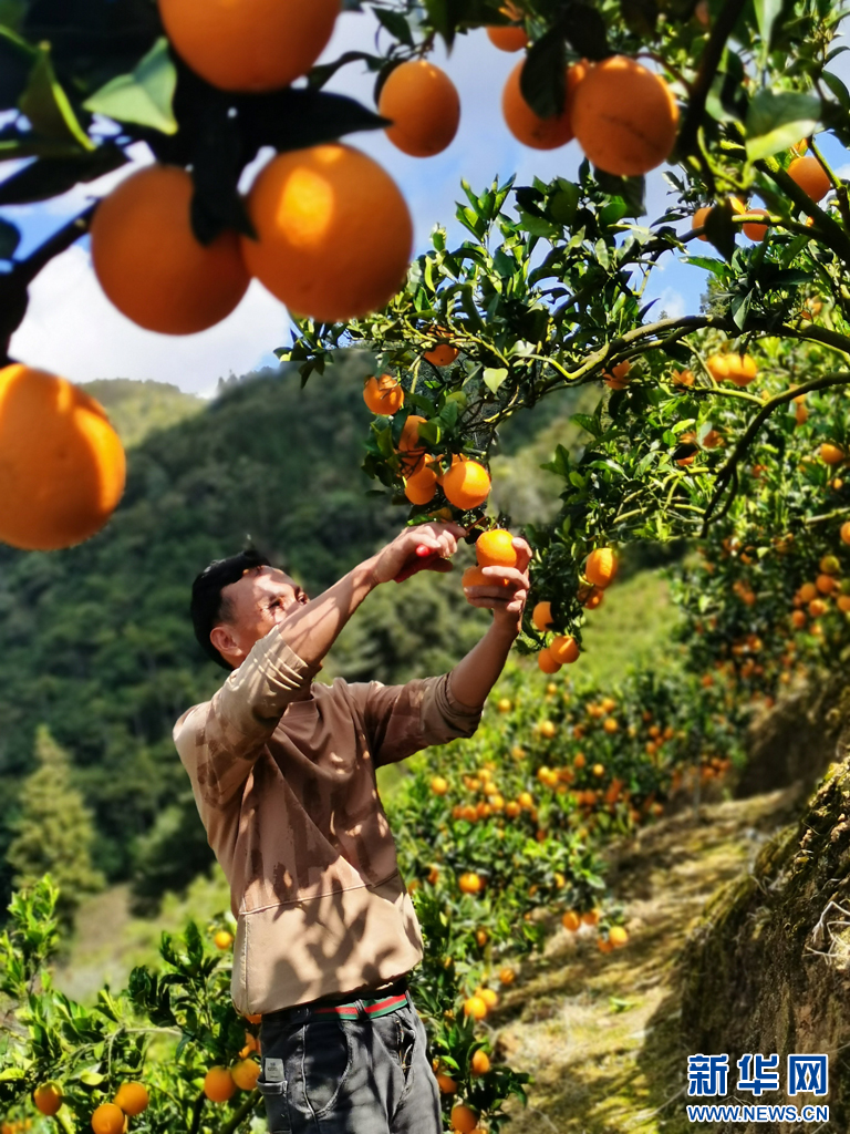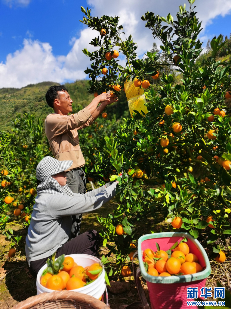 村民在采摘臍橙。新華網發(蒙自市融媒體中心 供圖)