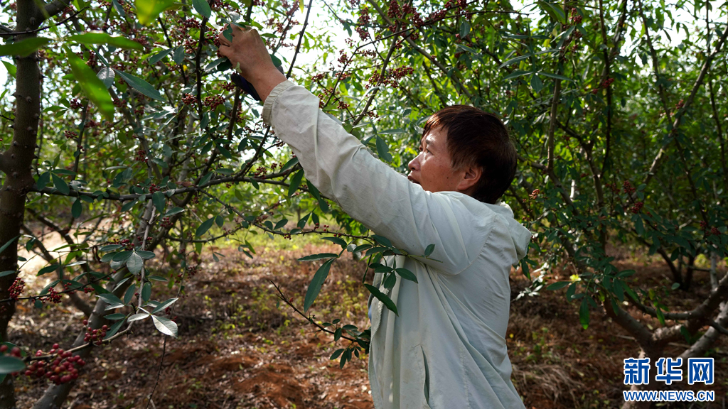村民在采收花椒。新華網發(蒙自市融媒體中心 供圖)