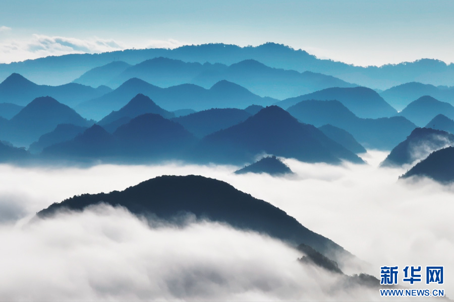 云海覆蓋下的層疊群山(12月11日攝)。新華網發(西疇縣融媒體中心供圖)