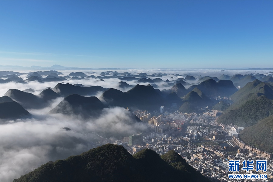 云海覆蓋下的西疇縣城(12月11日攝)。新華網發(西疇縣融媒體中心供圖)