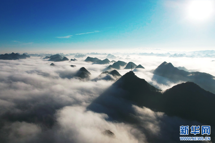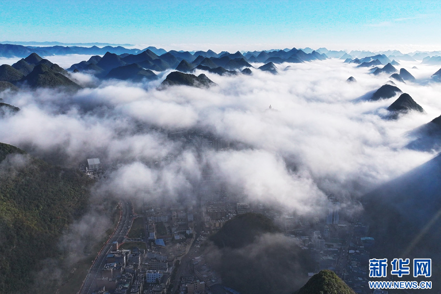 云海翻滾的西疇縣(12月11日攝)。新華網發(西疇縣融媒體中心供圖)