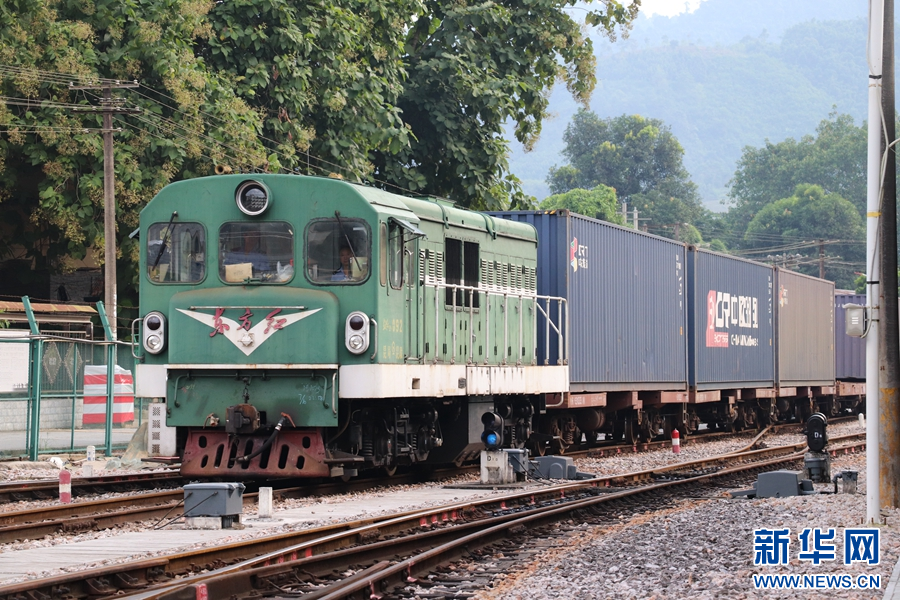 一列中越米軌鐵路國際聯運列車駛進山腰站(資料圖)。新華網發(平禮志 攝)