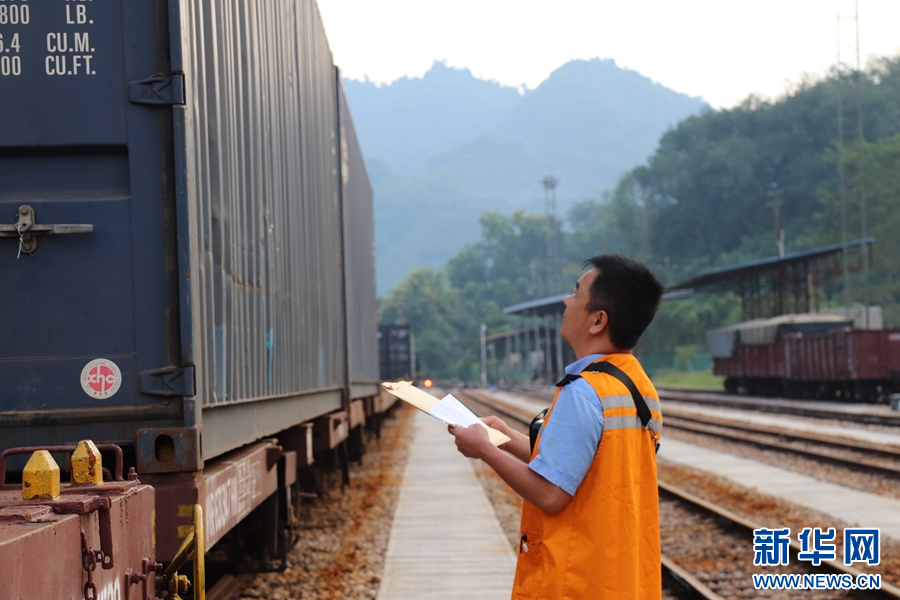 山腰站,鐵路工作人員正在對中越米軌鐵路國際聯運列車進行檢查(資料圖)。新華網發(平禮志 攝)