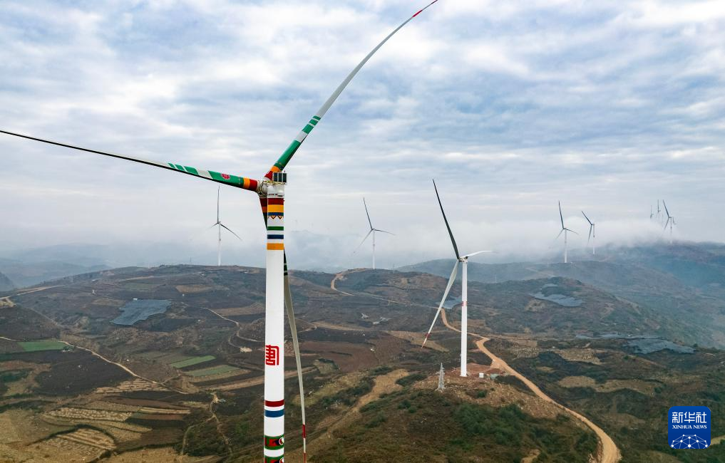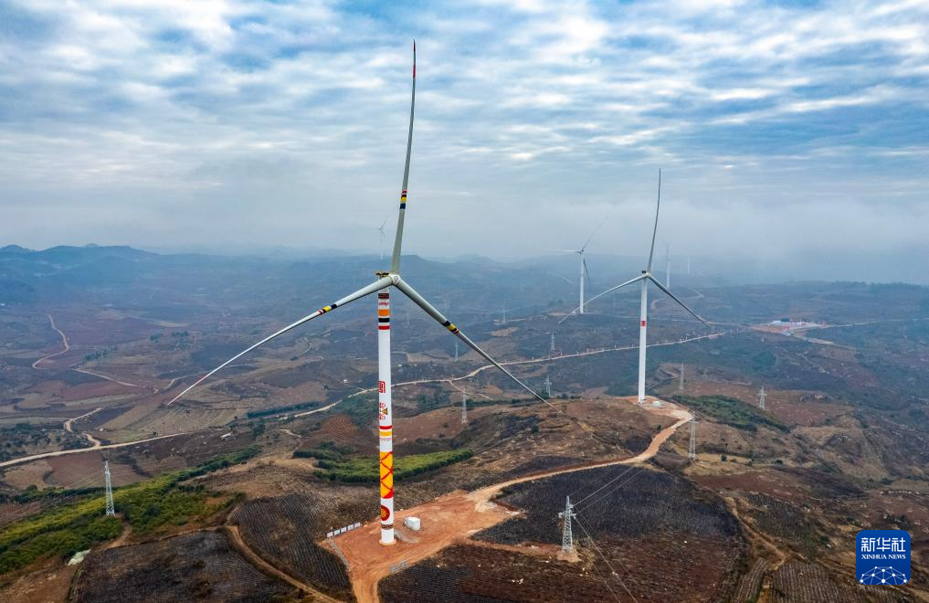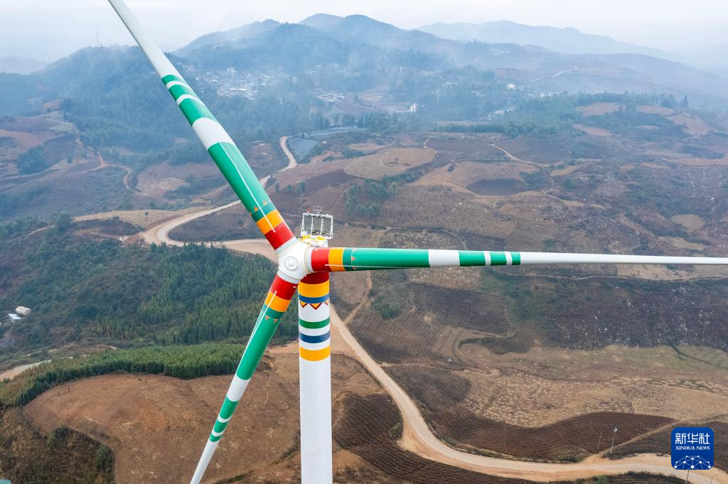 這是12月23日拍攝的位于文山州丘北縣的錦屏西風電項目風機(無人機照片)。新華社記者 陳欣波 攝