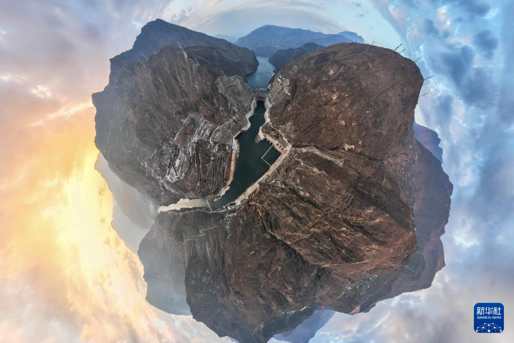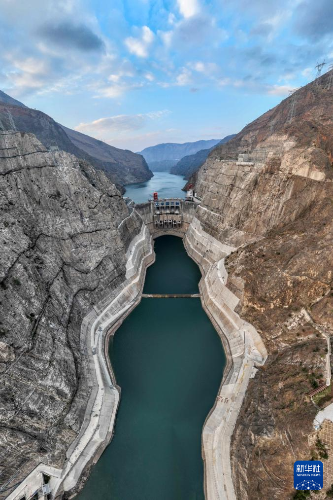 空中俯瞰烏東德水電站(無人機全景照片,12月22日攝)。新華社記者 胡超 攝