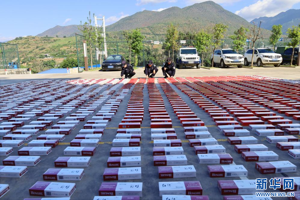 圖為云南保山邊境管理支隊曼海邊境檢查站查獲的卷煙。(保山邊境管理支隊供圖)