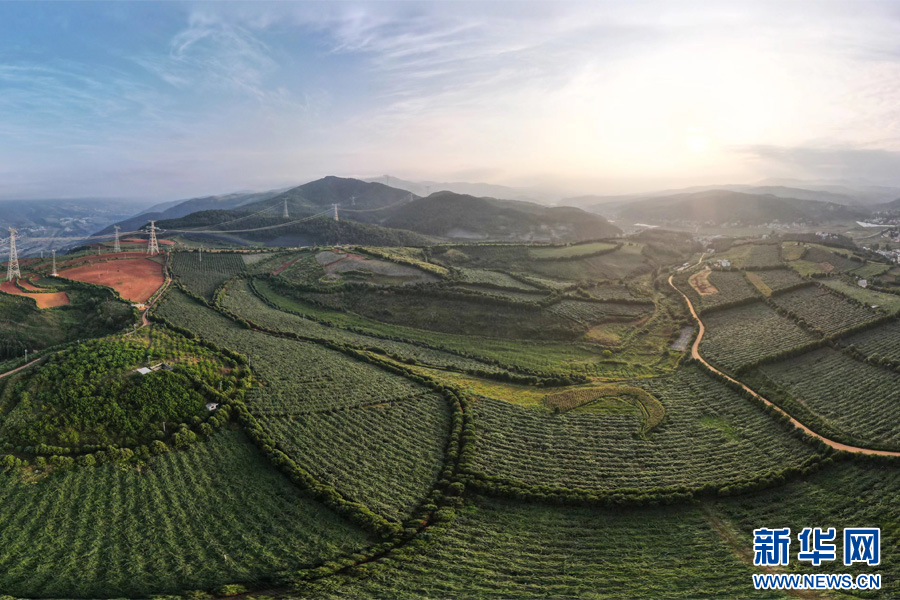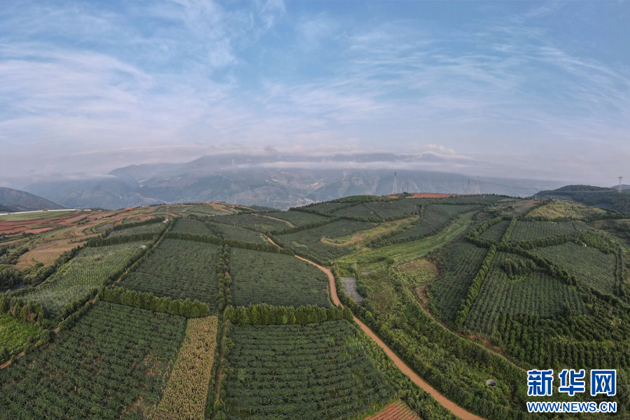 航拍尋甸縣鳳合鎮獼猴桃產業基地(資料圖)。新華網發(尋甸縣融媒體中心供圖)