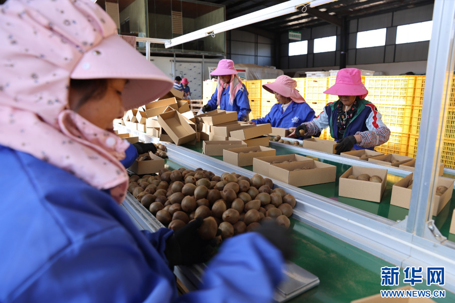 工人分揀獼猴桃(資料圖)。新華網發(尋甸縣融媒體中心供圖)