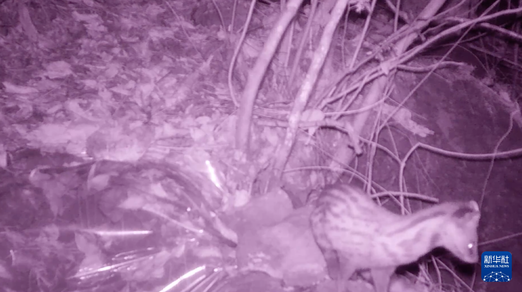 日前,云南省個舊市首次拍攝到國家一級保護野生動物——小靈貓。小靈貓晝伏夜出,行蹤隱秘,很難被發現,這組畫面是紅外相機在夜間23:50自動拍攝到的,小靈貓在鏡頭前短暫停留,它左顧右盼,身形靈動,看起來非?;顫?。