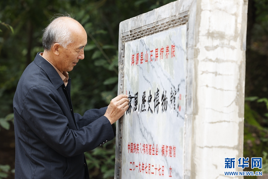 李桂科為“麻風歷史博物館”幾個字涂色(攝于9月13日)。新華網 趙普凡 攝