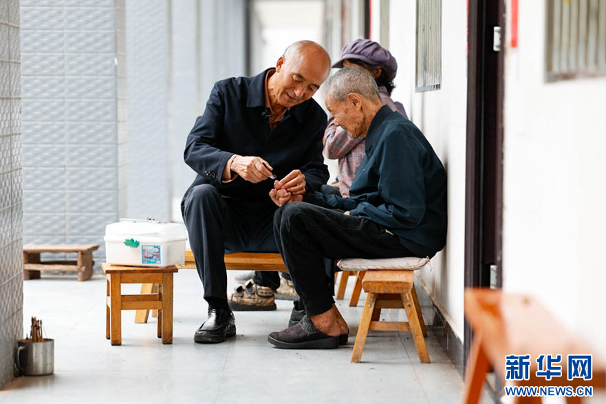 李桂科為手腳不便的康復者修剪指甲(攝于9月13日)。新華網 趙普凡 攝