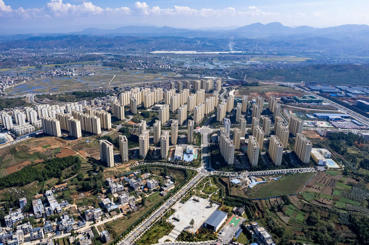 云南昭通市魯甸縣卯家灣易地扶貧搬遷安置區(2023年10月30日攝,無人機照片)。新華社記者 陳欣波 攝