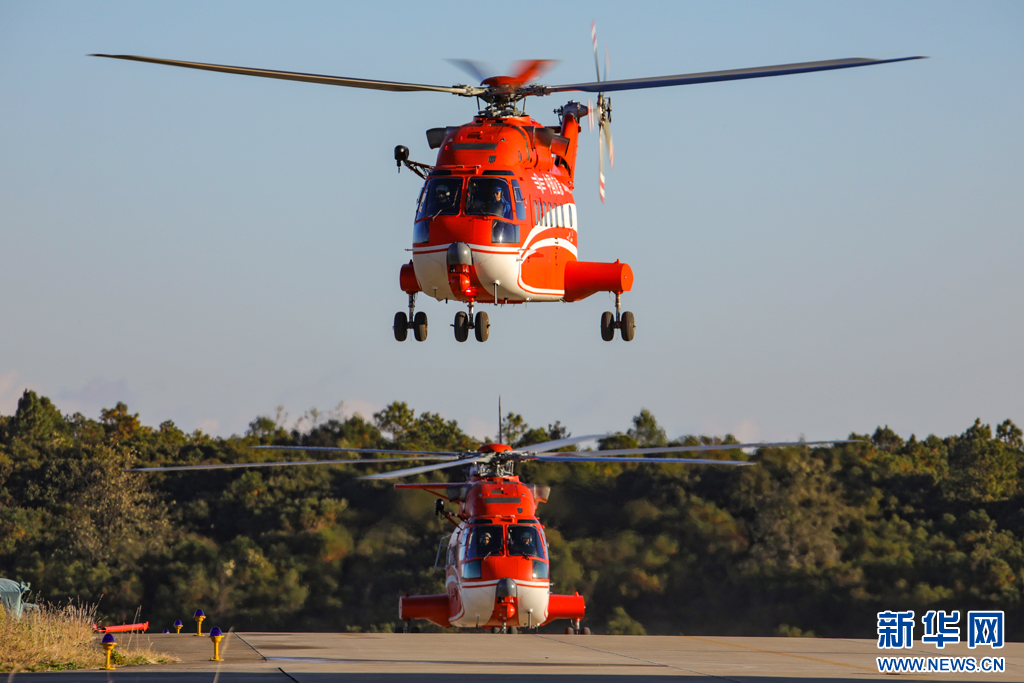 直升機呼嘯升空(1月4日攝)。新華網發(王維爽 攝)