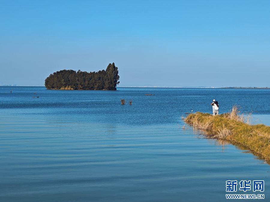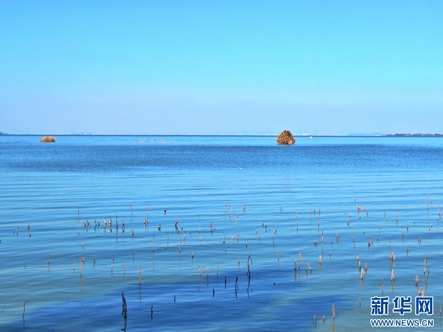 滇池湖水碧藍如洗(1月13日攝)。新華網發(楊景浩 攝)