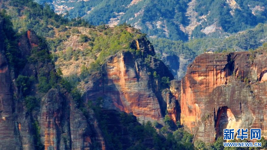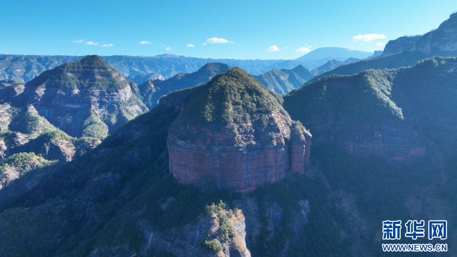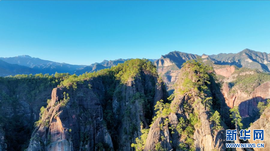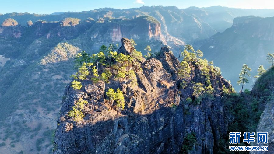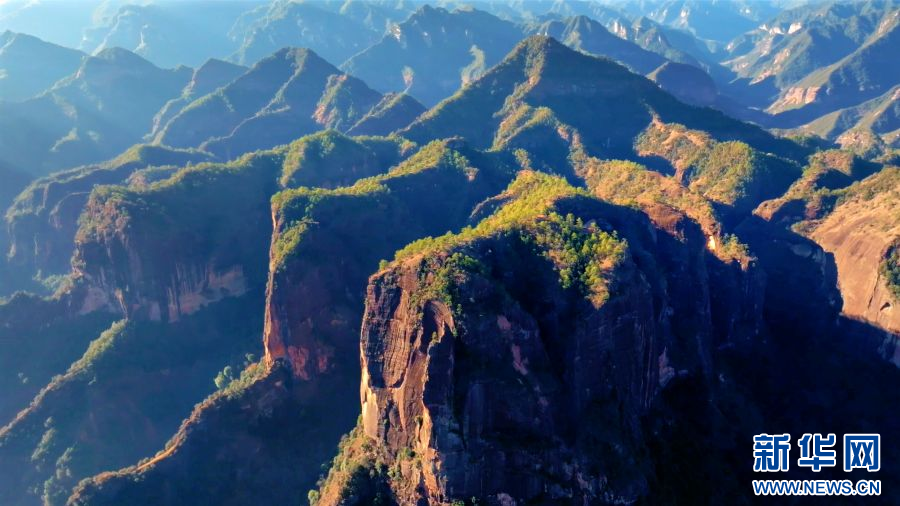 航拍冬日陽光下的老君山(攝于1月19日)。新華網發(王偉 攝)