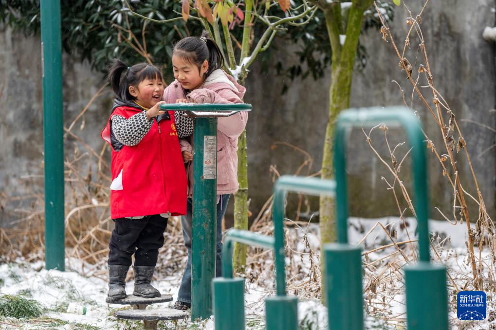 1月24日,小朋友在鎮雄縣塘房鎮涼水村和平小學老校區安置點玩耍。