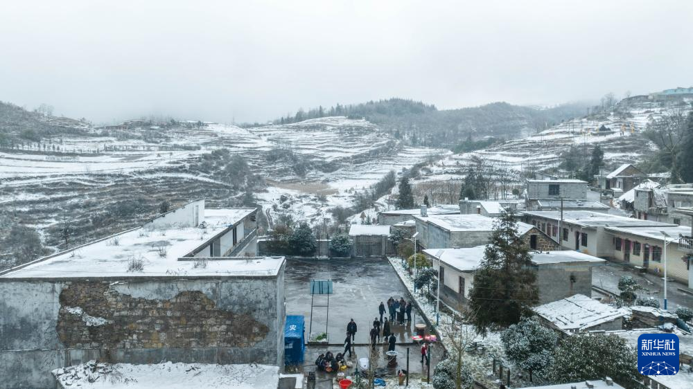 這是鎮雄縣塘房鎮涼水村和平小學老校區安置點(1月24日攝,無人機照片)。