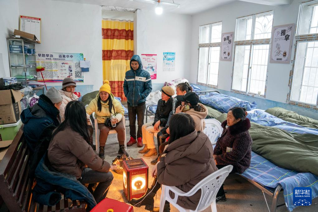 1月24日,受災群眾在鎮雄縣塘房鎮涼水村和平小學老校區安置點休息。