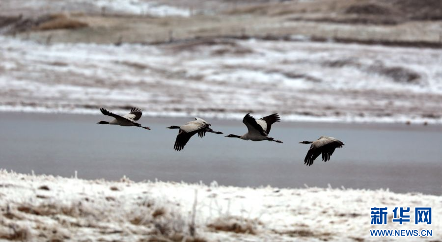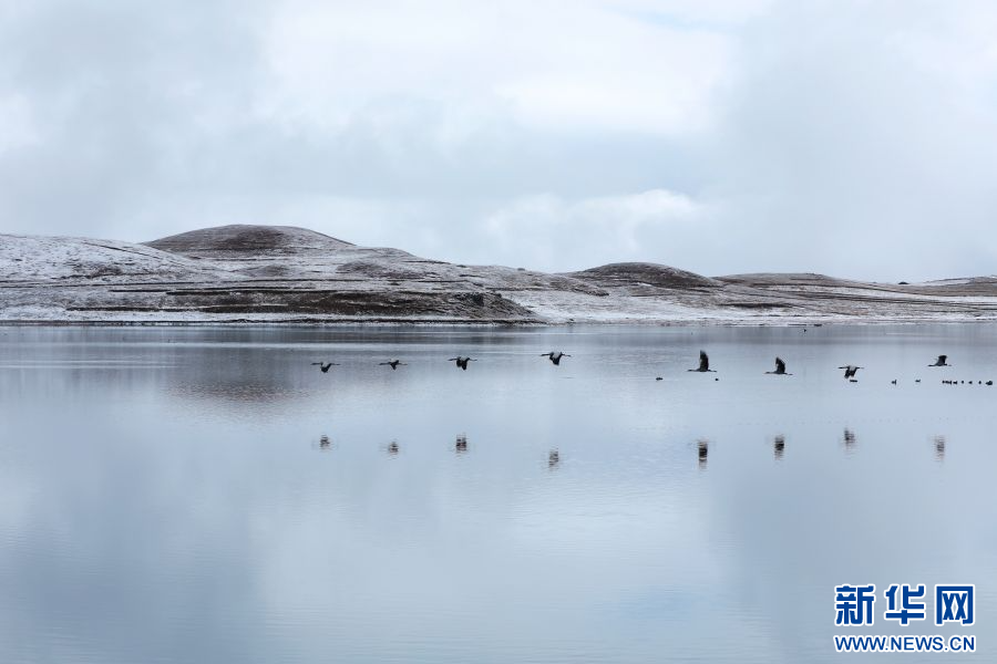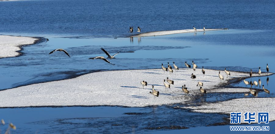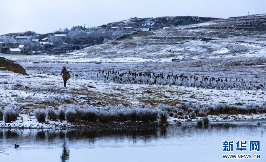 隆冬時節,云南省昭通市再次迎來大范圍降雪天氣,云南大山包黑頸鶴國家級自然保護區白雪皚皚,銀裝素裹。黑頸鶴在雪中嬉戲、覓食,宛如一幅寫意水墨畫。(申曉 王遠劍)
