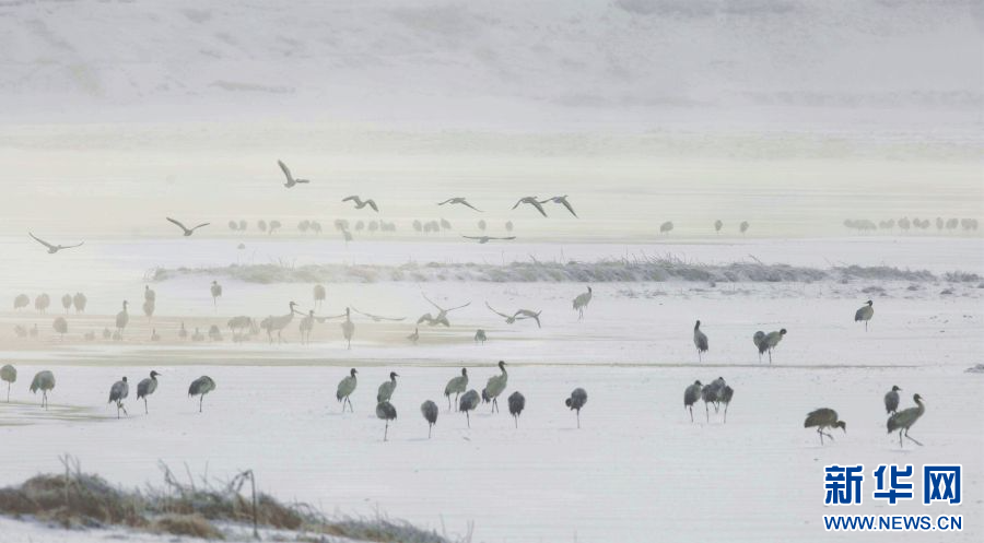 云南昭通大山包:銀裝素裹 鶴影翩躚