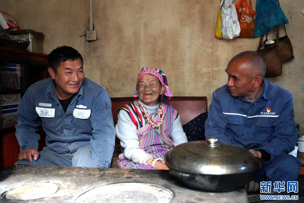 怒江貢山供電局獨龍江供電所營配班工作人員走訪獨龍族奶奶李文仕,了解其用電情況并進行用電安全檢查。
