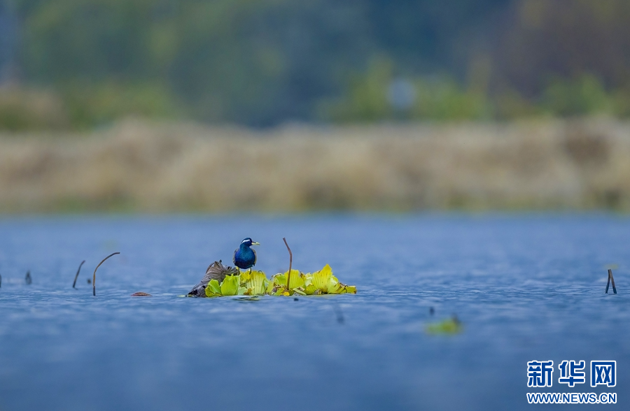 在湖面上休息的銅翅水雉(1月26日攝)。新華網發(杜銀磊 攝)
