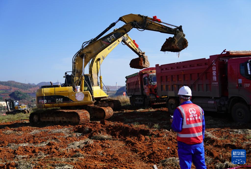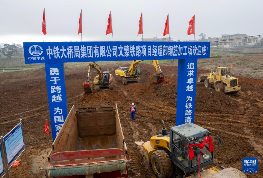 這是1月30日在云南文山拍攝的文蒙鐵路項目施工現場。