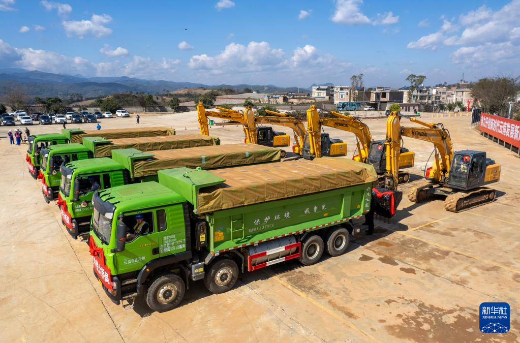 這是1月30日在云南文山拍攝的文蒙鐵路項目開工儀式現場。