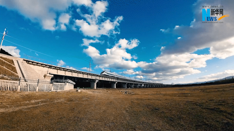 鐵路穿過哈巴雪山,火車疾馳于橫斷山脈間