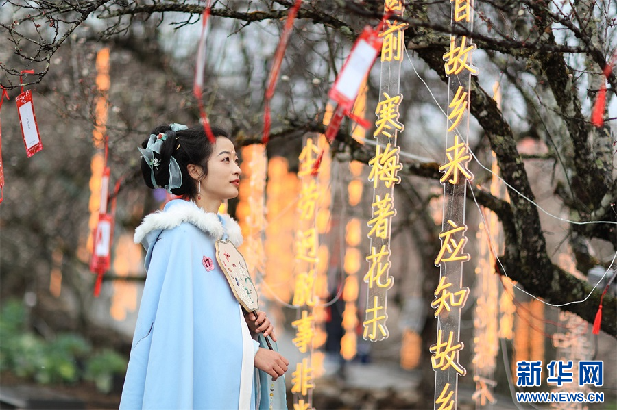穿著漢服的趙女士正在一邊賞梅,一邊猜燈謎?!爸袪I梅花節也有漢服活動,我覺得穿著漢服賞梅別有一番韻味,今天在這里不僅欣賞到了美景,也結識了很多喜歡漢服的朋友?!壁w女士說。