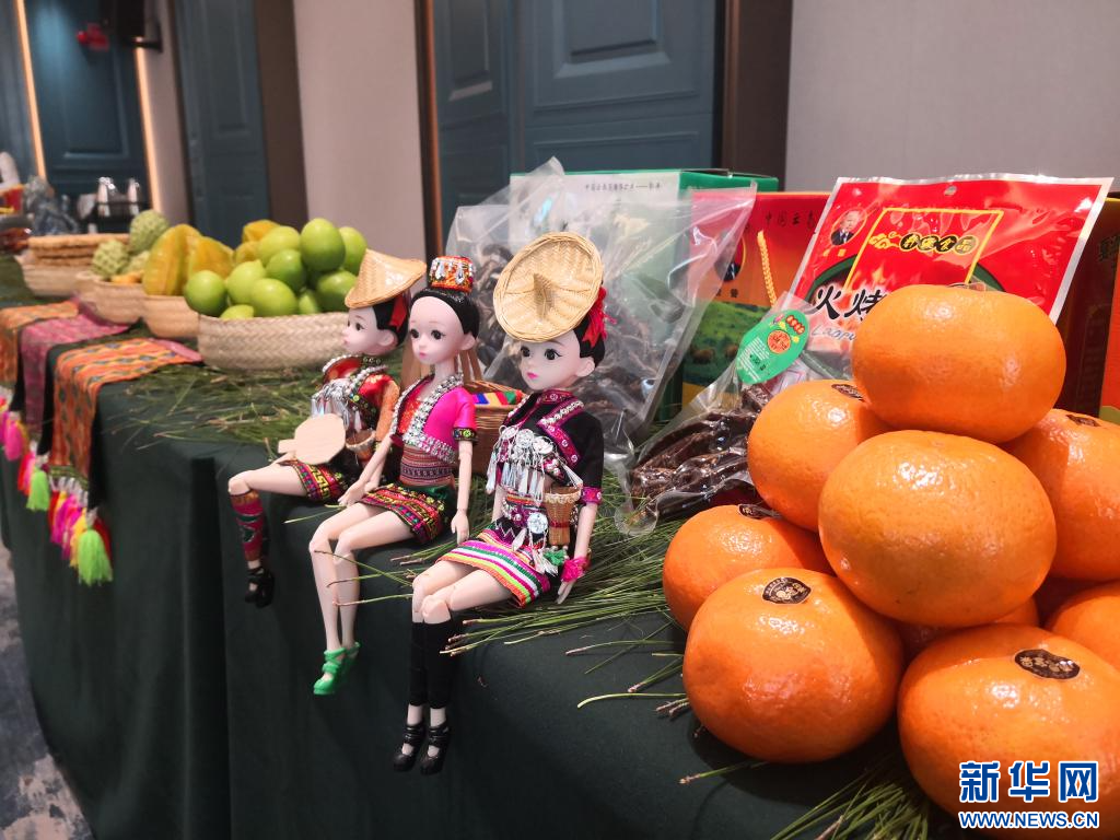 發布會現場展示的玉溪各地土特產和玩偶。游楊 攝
