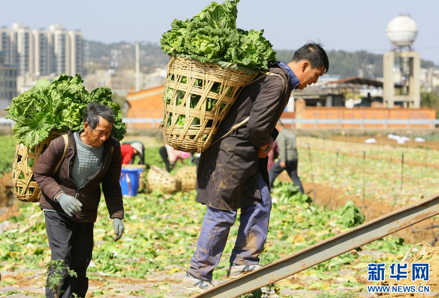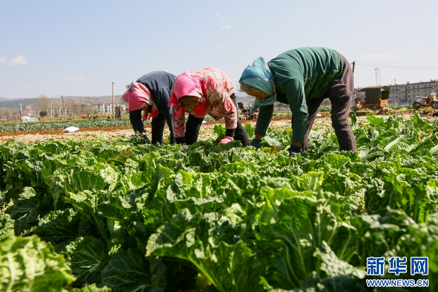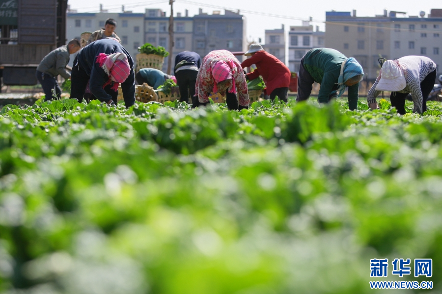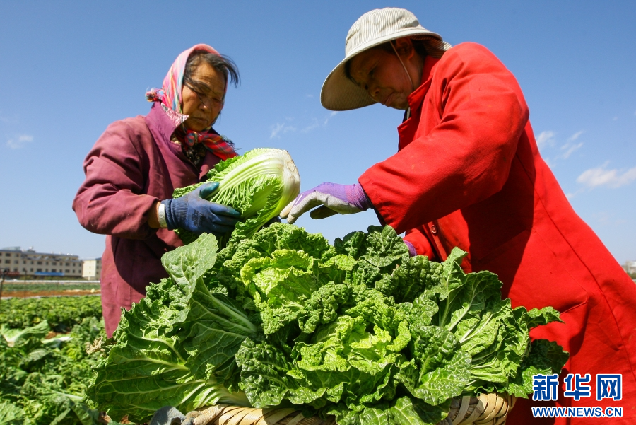 春節臨近,云南省曲靖市沾益區西平街道的菜農忙著采收成熟的蔬菜,供應節前市場。新華網發(楊俊鵬 攝)