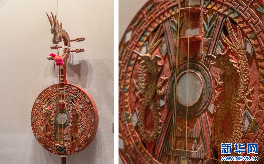 琴頭和面板上均裝飾有紅色的龍