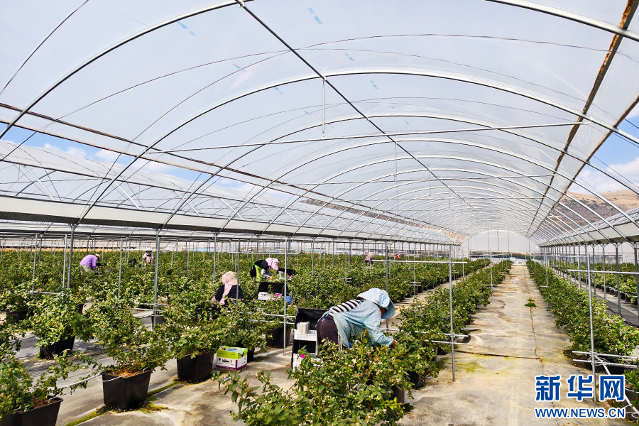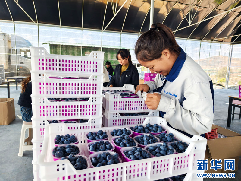 農戶收獲藍莓(2月16日攝)。新華網發(陳華英 攝)