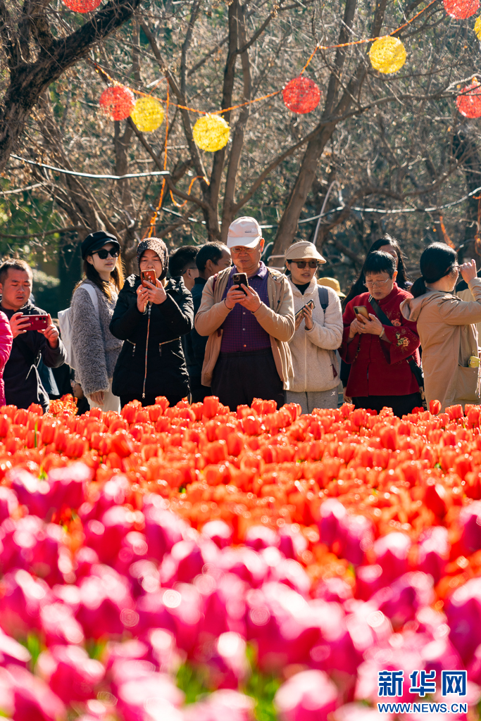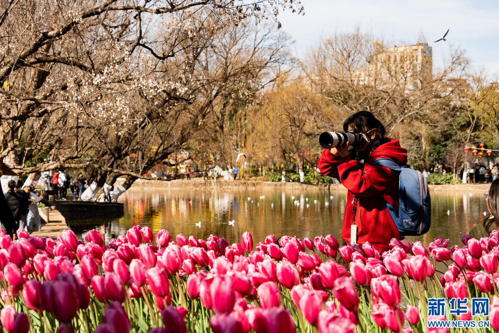 近日,云南省昆明市翠湖公園的郁金香競相綻放,吸引不少游客前來觀賞游覽。(完)