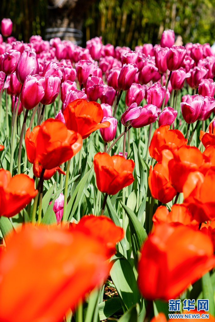 翠湖公園內綻放的郁金香(2月14日攝)。新華網發(鄭益 攝)