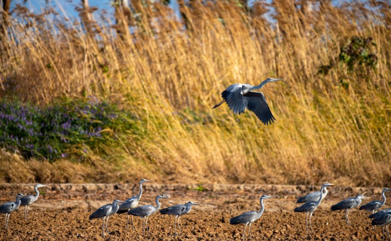 云南昆明濕地公園水鳥翱翔 風景如畫