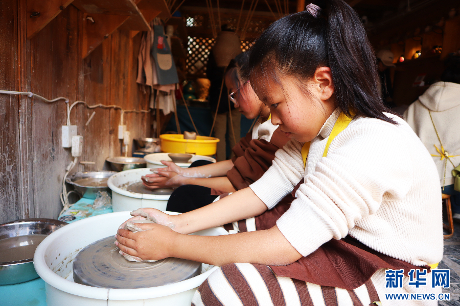 游客體驗永昌陶制作(2月19日攝)。新華網發(楊雯 攝)