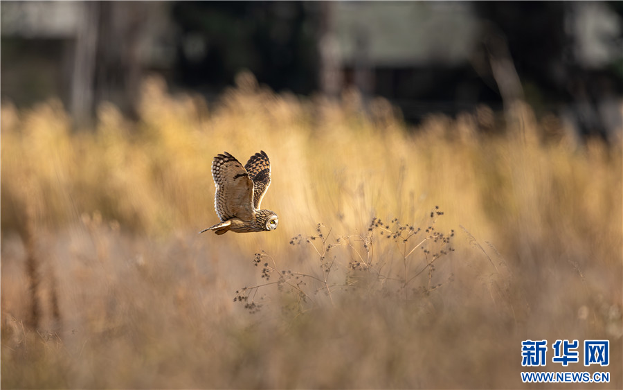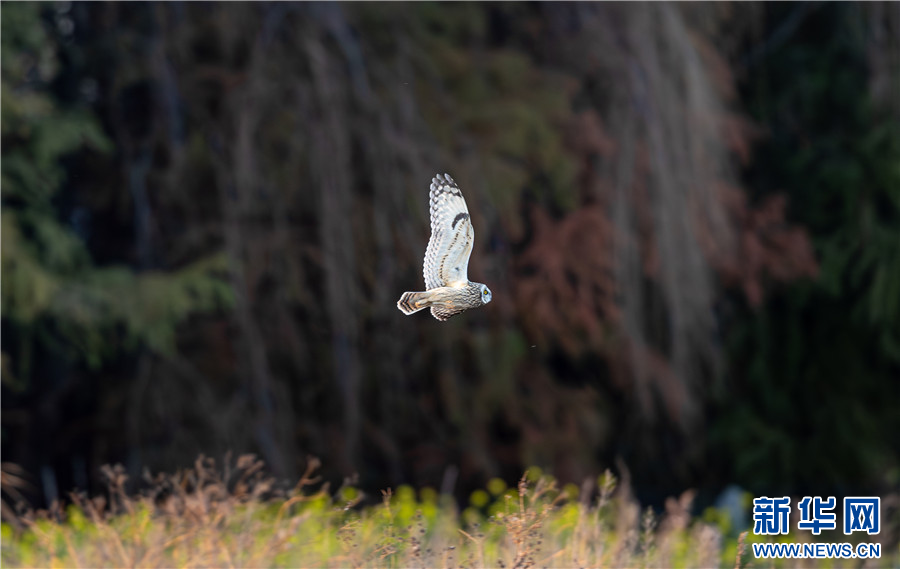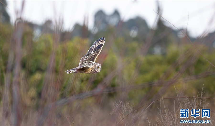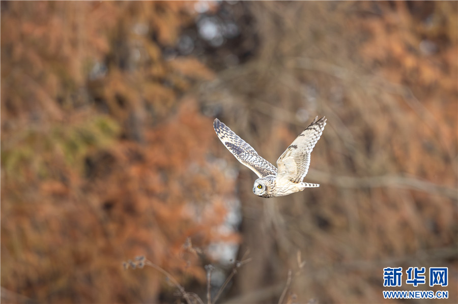 短耳鸮在空中飛翔(2月19日攝)。新華網發(宋光旭 攝)