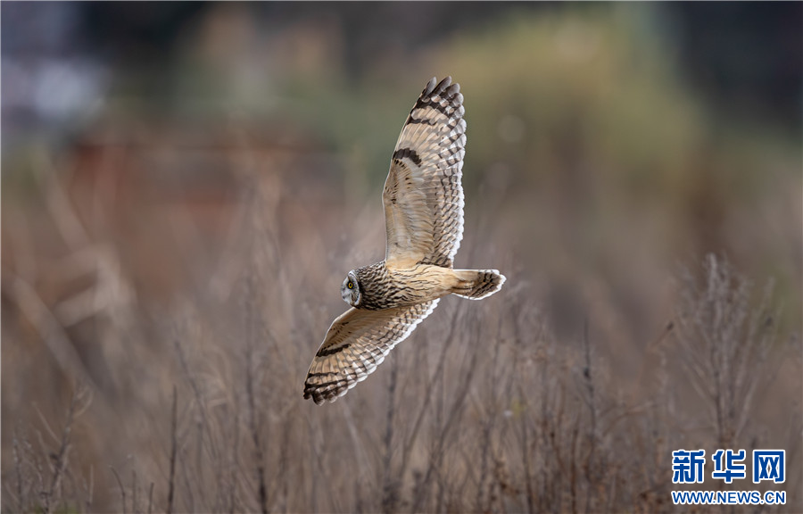短耳鸮展翅飛翔(2月19日攝)。新華網發(宋光旭 攝)