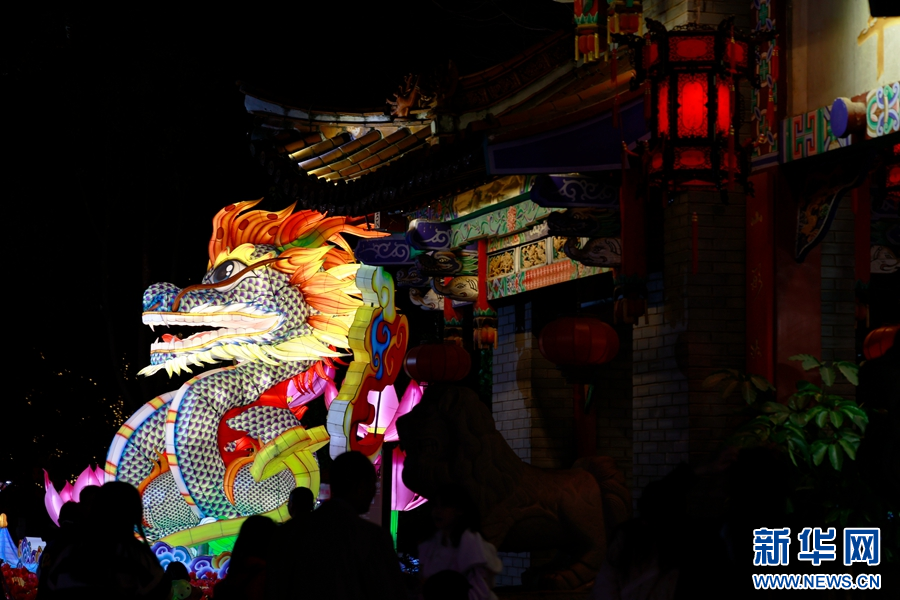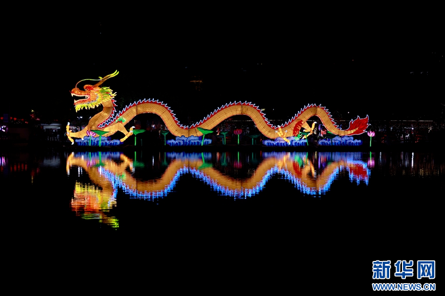 元宵賞燈,昆明翠湖就是一個好去處。為迎接龍年新春的到來,翠湖公園將傳統燈會與園林藝術相結合,布置了水面燈光秀、燈光小品、燈光長廊等一系列景觀。入夜,萬千彩燈亮起,公園里流光溢彩、璀璨奪目,其中最壯觀的是南湖塘長40米、寬4米、高6.5米的“龍騰盛世”主題水面燈光秀,此外還有麒麟獻瑞、化蝶、魅力石榴等多組燈光主題小品,以及由滿天星、蜂飛、蝶舞、燈籠等氛圍燈組成的燈光長廊。