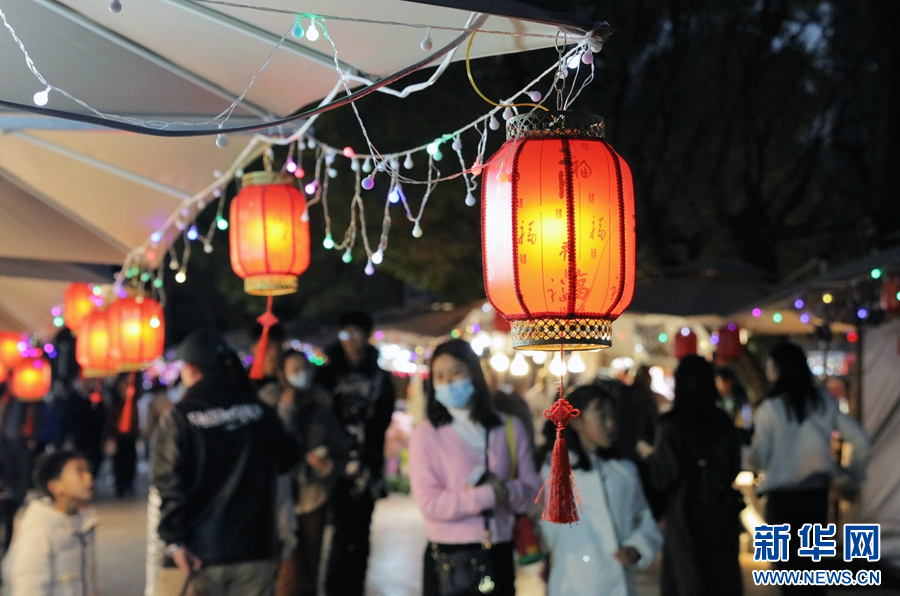 2月21日晚的翠湖公園星光夜市,燈光璀璨,游人如織。新華網 念新洪 攝