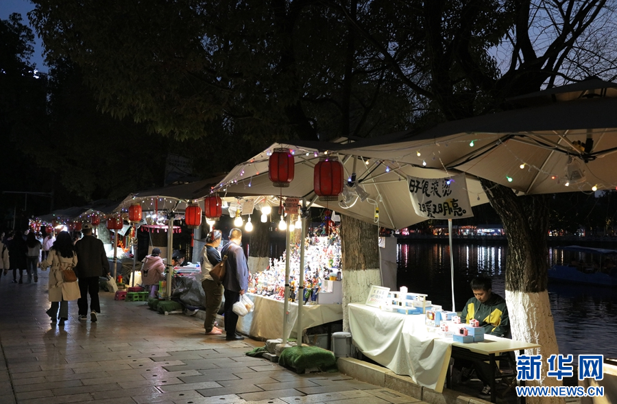 翠湖公園里的星光夜市(攝于2月21日)。新華網 念新洪 攝
